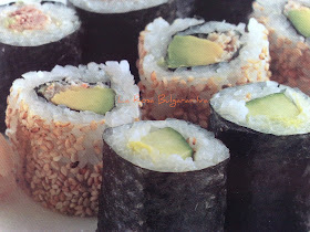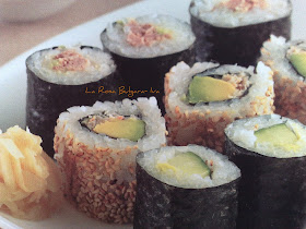 - Adagiare i Maki Sushi su un piatto e insaporire con Wasabi e Zenzero.Accompagnare con la salsa di soia.